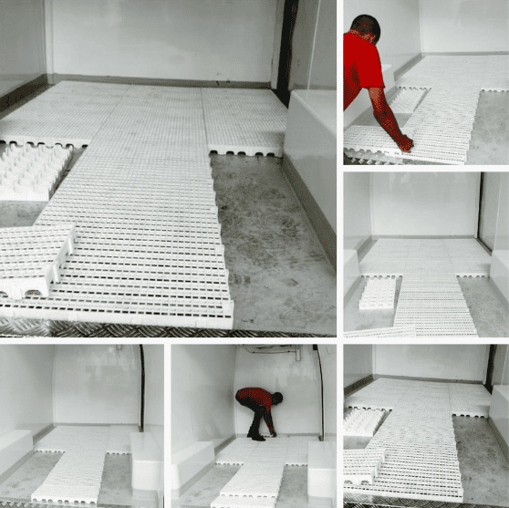 Os estrados plásticos são fabricados em polipropileno – PP em módulos que se encaixam perfeitamente sem deixar sobressaltos ou rebarbas e são encaixados até cobrir uma área específica, e atendem as normas da ANVISA – Agência Nacional de Vigilância Sanitária.